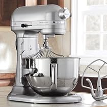 This exclusive 6-quart stainless-steel bowl is large enough for double batches of cookie dough. Soft Start feature prevents splash-out. Planetary mixing action thoroughly incorporates and combines all ingredients. Attachment hub lets you turn your mixer into a multipurpose kitchen machine. Includes a clear pouring shield burnished flat beater burnished PowerKnead spiral hook and professional wire whip attachment for maximum volume in whipping cream or egg whites. Elegant metallic chrome exclusive to CHEFS™. Model: KP26M8XMC.Product Features